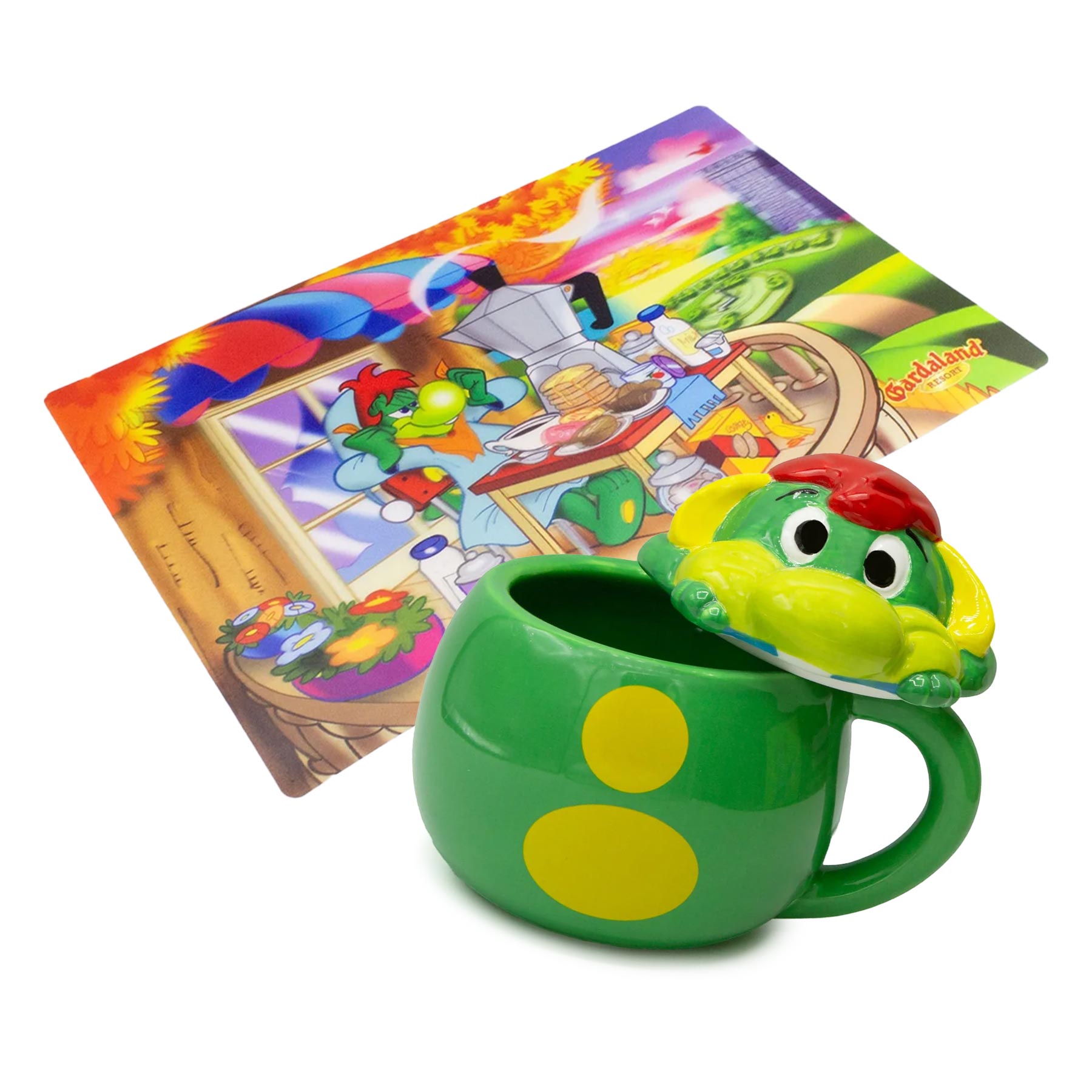 Il set include una tazza in porcellana dipinta a mano con coperchio, ideale per gustare bevande calde o fredde in compagnia della mascotte più amata, e una tovaglietta con grafica 3D che raffigura Prezzemolo appena sveglio mentre fa colazione. Un abbinamento allegro e colorato, perfetto per grandi e piccoli, che porta un tocco di magia sulla tavola e diventa anche una splendida idea regalo per tutti i fan di Prezzemolo.