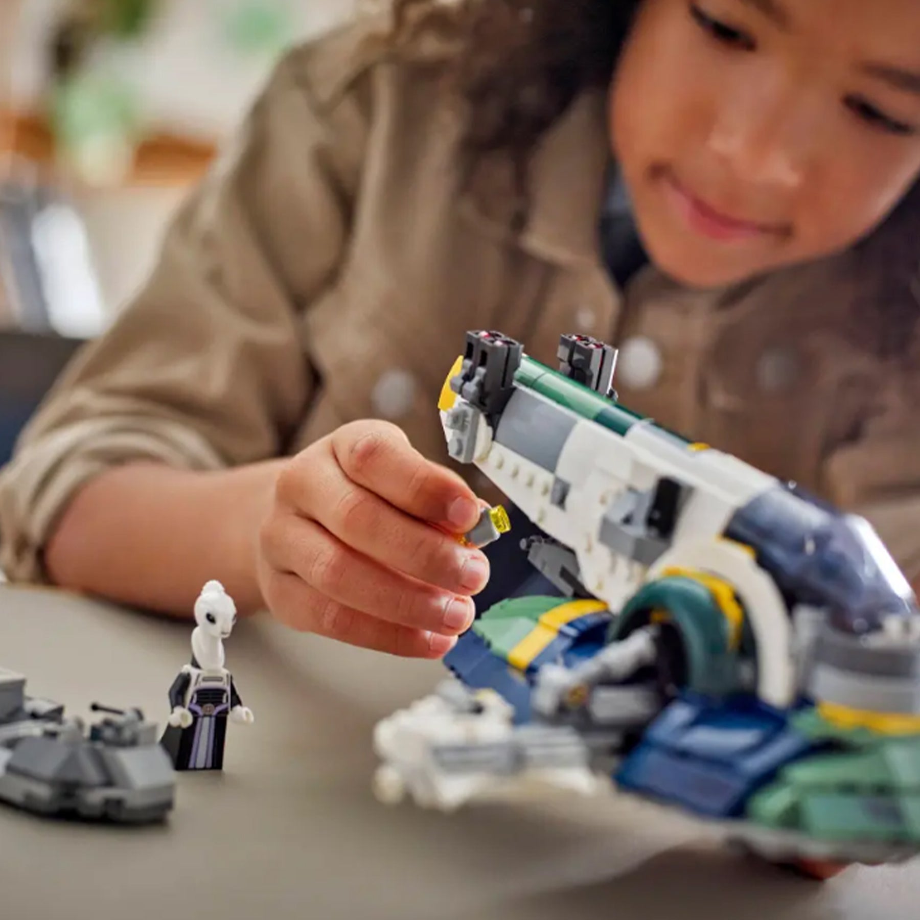 Un fantastico regalo Star Wars™ per i bambini, il set include 3 minifigure LEGO: Jango Fett con 2 pistole blaster e un jetpack, Young Boba Fett e Lama Su. È presente anche un carrello di servizio che può essere utilizzato per spostare l’astronave negli scenari di gioco o come supporto per creare decorazioni di fantasia tra una battaglia e l’altra.